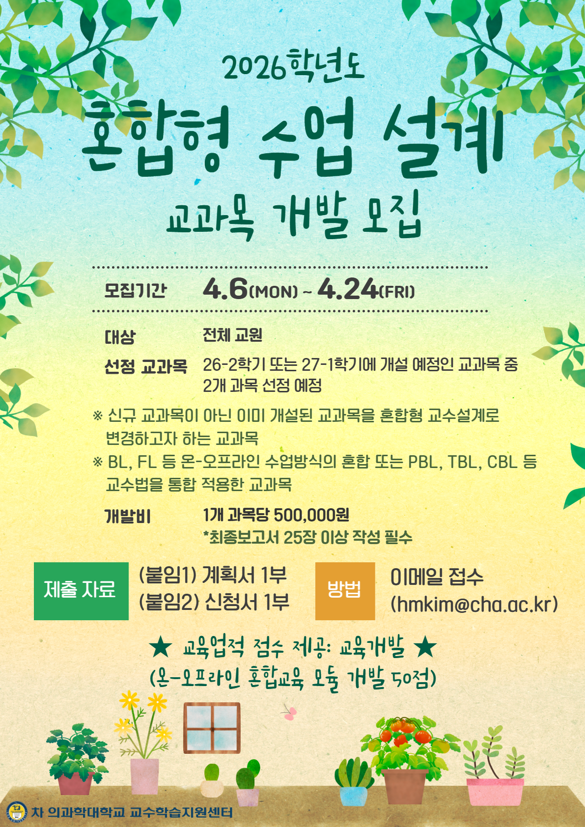 ☞ 신청바로가기: https://lms.cha.ac.kr/course/view.php?id=31603